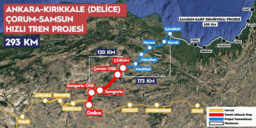 Ankara-Samsun Demiryolu Yüksek Hızlı Tren Projesi tamamlandığında yıllık 12 milyon yolcu, 14 milyon ton yük taşıma kapasitesi olacak.