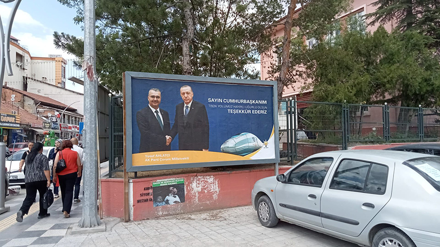 Çorum’da yıllardır beklenen ve ‘asrın yatırımı’ olarak nitelendirilen hızlı tren projesi için kent genelinde dikkat çeken bir teşekkür kampanyası başlatıldı. AK Parti Çorum Milletvekili Av. Yusuf Ahlatcı’nın imzasını taşıyan afişler, Cumhurbaşkanı Recep Tayyip Erdoğan’a teşekkür amacıyla şehrin dört bir yanına yerleştirildi.