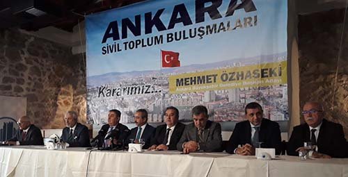 Ulucanlar Cezaevi Müzesi’nde düzenlenen basın toplantısında sivil toplum örgütleri adına açıklama yapan Çorumlular Federasyon Başkanı Hayri Çağır, Ankara’nın havasını soluyan vatandaşlar olarak Ankara’ya borçlu olduklarını vurgulayarak, “Bizler, Ankara’da yaşayan, üreten, tüketen, ömrünü Ankara’ya vermiş sivil toplum kuruluşları olarak yerel seçimlerle ilgili kanaatlerimizi paylaşmak adına bir araya geldik. Bizler bu şehirde yaşayan insanlar olarak bu şehirde olup biten her şey bizleri yakından ilgilendiriyor. Bizler ezan diyen, bayrak diyen, cumhuriyet diyen kuruluşlarız. Nasıl Kurtuluş Savaşı’nda cephede yer aldıysak, bugün yine vatan için canımızı feda etmeye hazırız” diye konuştu.