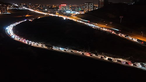 Araç trafiğinin yoğun olduğu "kilit kavşak" dron ile havadan görüntülendi. Trafik ekipler, araç yoğunluğunun fazla olduğu noktalarda yoğun mesai harcıyor. Maddi hasarlı trafik kazaları sebebiyle de zaman zaman trafik akışı yavaşlıyor. Yahşihan ve Elmadağ ilçeleri arasındaki güzergahında kilometrelerce araç kuyruğu gözleniyor.