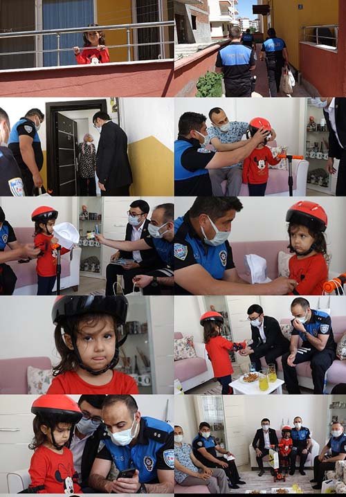Emniyet Müdürü Mehmet Gülser, kentte yaşayan Ömer-Ayşegül Yurdakul çiftinin kızları Zeynep Eda’nın polisten korktuğunu öğrenince, ailenin ziyaret edilmesi için ekiplerine talimat verdi. Bunun üzerine görevlendirilen Toplum Destekli Polis ekipleri, Yurdakul ailesini, evlerinde ziyaret etti. Ailenin evine misafir olan polisler, korkusunu yenmesi için Zeynep Eda’ya polis kimlik kartı ve hediyeler verip hatıra fotoğrafı çektirdi.